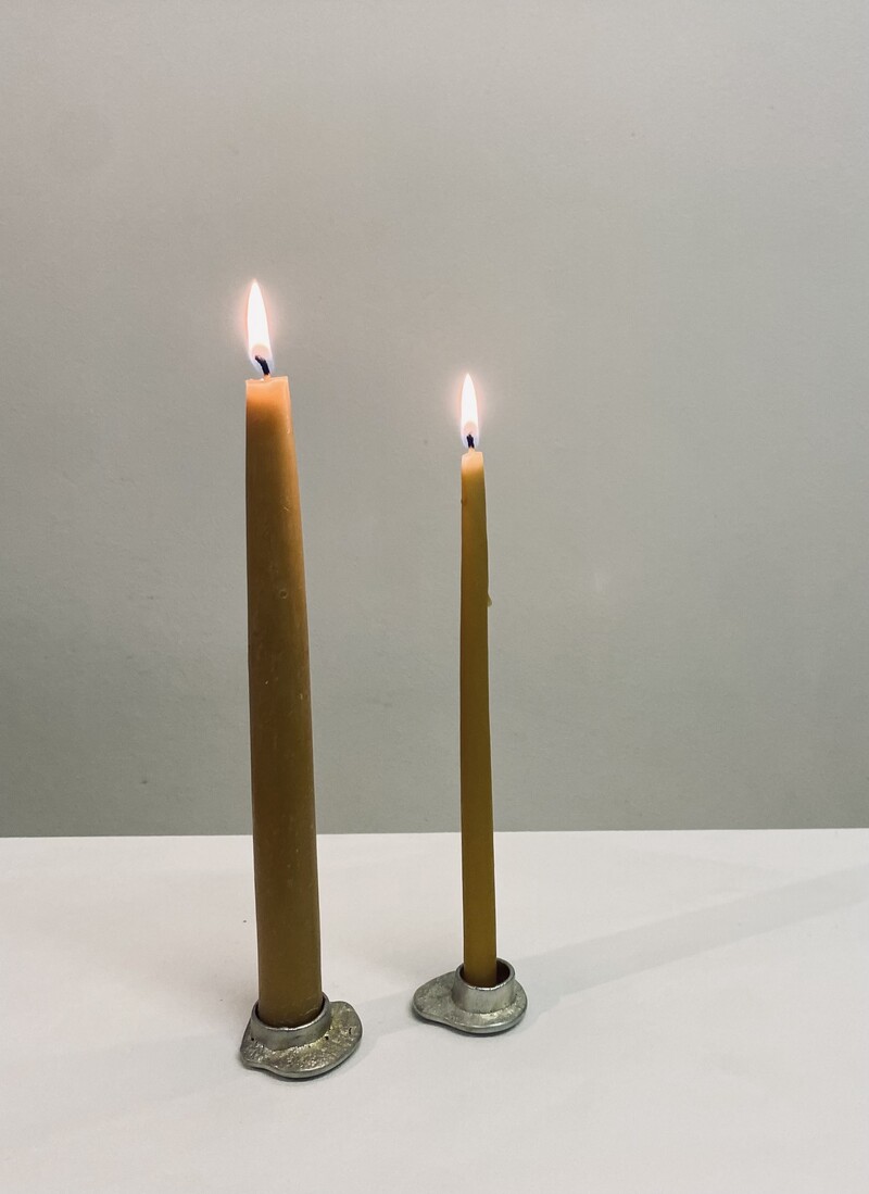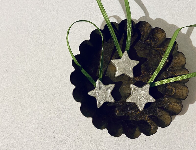 Pewter cast homeware in the form of candle stick holders and Christmas tree decorations. Each piece is cast individually in sand and as such, completely unique - no two pieces, even those of the same design are identical. The process of metal casting is one of ritual for me in my art practice and so it is the perfect process by which to make items that a part of every day or annual rituals such as lighting candles to relax after a long day or the joy of decorating a Christmas tree. Each piece is 100% recycled, led free pewter.